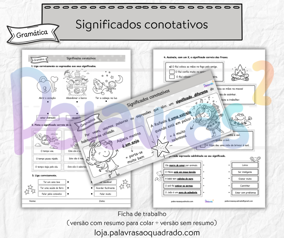 Ficha de trabalho com mini resumo, para trabalhar os significados conotativos.