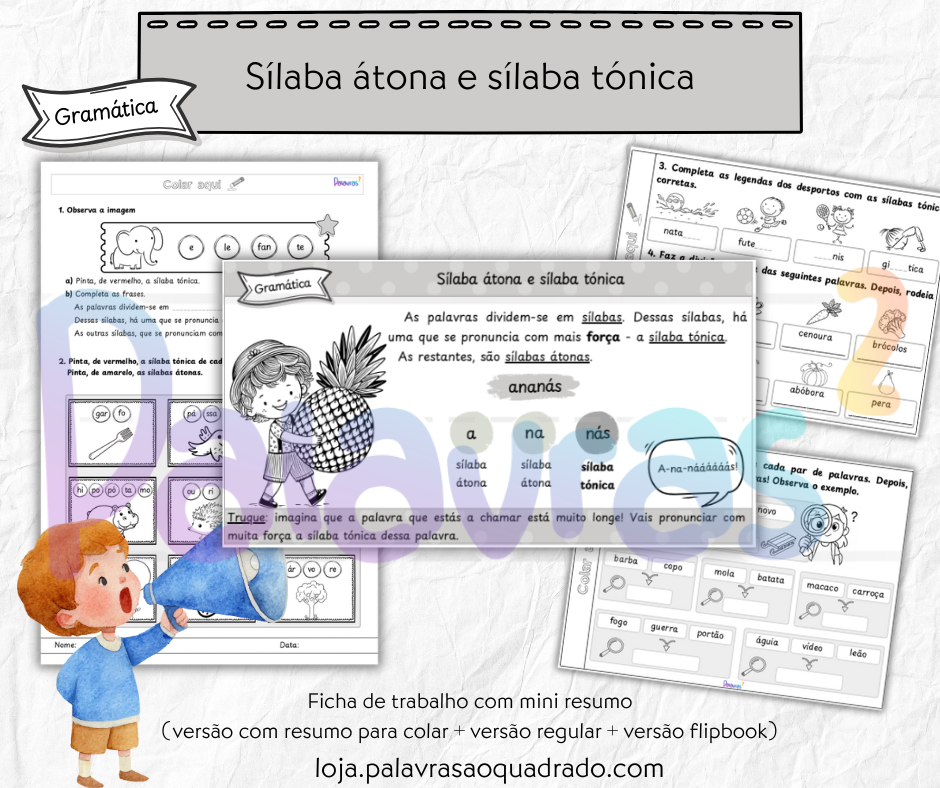 Ficha de trabalho com mini resumo para colar na 1.ª página (género flipbook).