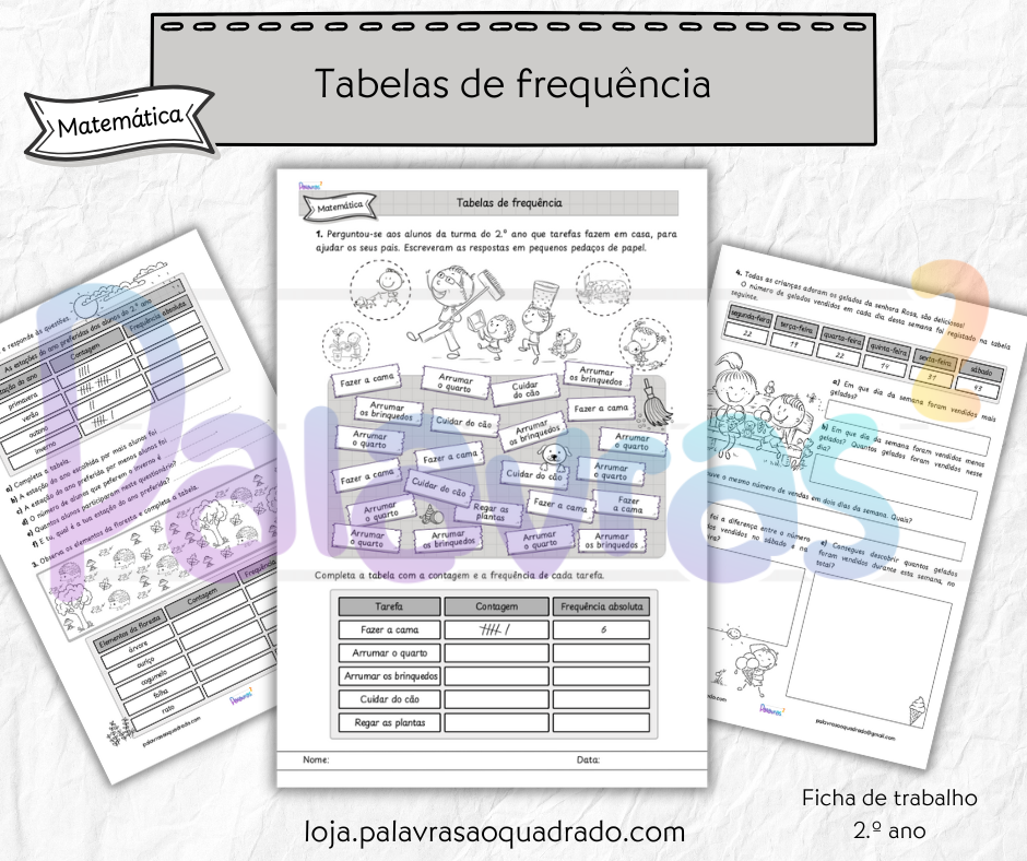Ficha de trabalho destinada ao 2.º ano, para trabalhar as tabelas de frequência.